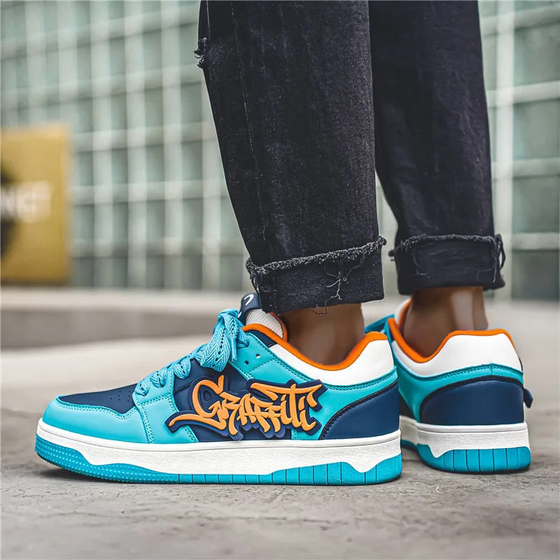 Turn heads with the Graffiti sneakers—where fearless street style meets everyday comfort. With striking blue tones, vivid orange graffiti text, and padded support, these kicks bring pure attitude to Africa's fashion-forward crowd.